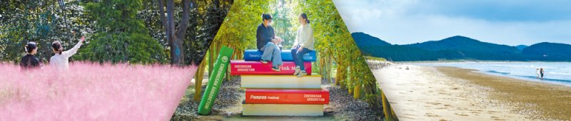 게국지와 노을, 그리고 그 다음 코스는 숲이다. 안면도자연휴양림에서는 하늘 높이 솟아있는 키 큰 소나무(안면송)를 만날 수 있고, 청산수목원에선 가을을 알리는 팜파스그라스와 붉게 피어난 핑크뮬리를 영접할 수 있다.