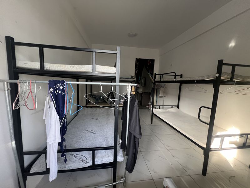 범죄조직이 숙박한 것으로 추정되는 건물에서는 미처 챙기지 못한 옷가지와 맥주캔 등이 방안에 널브러져 있었다. 숙소로 들어서자 방 하나에 이층침대 2~4개가 들어가 있었다.