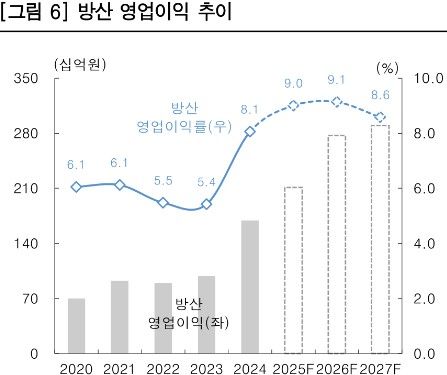 이에 올해 방산 영업이익은 2769억원으로 추정된다. 전년 동기대비 31.1% 늘어난 수준이다.