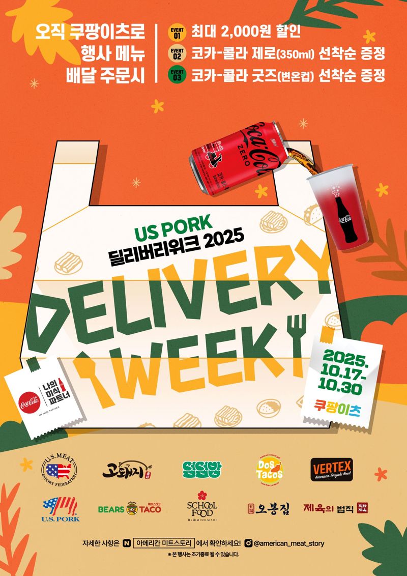쿠팡이츠를 통해 해당 브랜드들의 U.S. Pork 행사 메뉴를 주문하면 최대 2000원 할인 혜택을 받을 수 있다. 이 기간 동안 할인 혜택과 함께 '코카콜라 제로(350ml)'가 제공되며, 행사 메뉴 주문 시 코카콜라 변온컵 굿즈도 선착순 추가 증정된다.