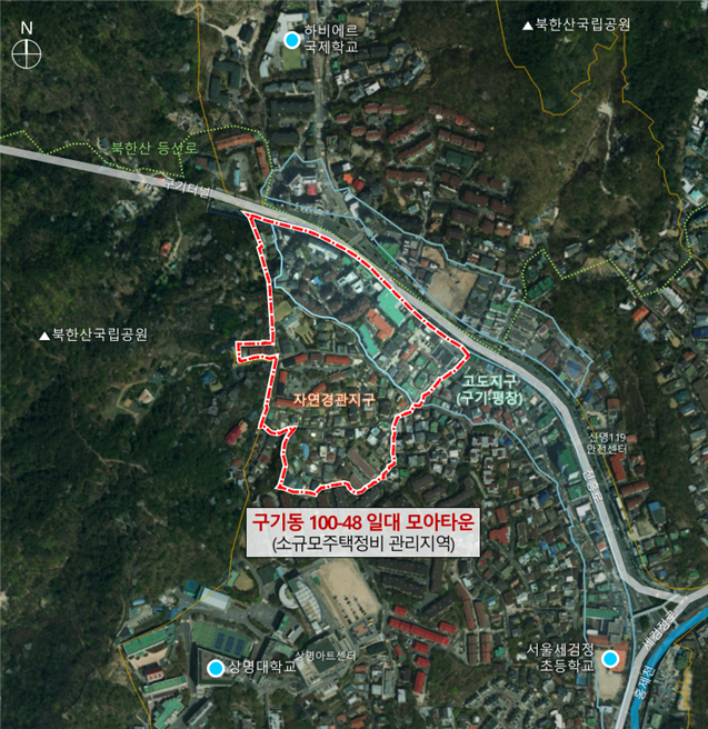 서울시는 지역 사업 여건을 고려해 지난해 12월 공공참여 모아타운 대상지로 지원을 시작, 높이 규제를 조정해 자연경관지구는 최대 16m에서 24m 이하로, 고도지구 높이는 최대 24m에서 45m 이하로 완화했다. 용도지역도 제2종 일반주거지역으로 상향했다. 일대는 북한산국립공원과 북악산, 인왕산 등 자연이 어우러진 쾌적한 주거환경으로 제공될 예정이다.