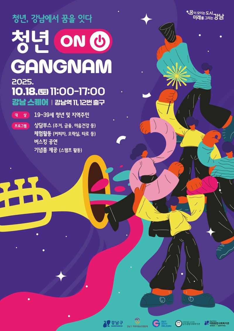 [파이낸셜뉴스] 서울 강남구는 오는 18일 오전 11시부터 오후 5시까지 강남역 11·12번 출구 앞 스퀘어광장에서 '청년 고독사 예방 거리 캠페인-청년 ON 강남'을 개최한다고 17일 밝혔다.