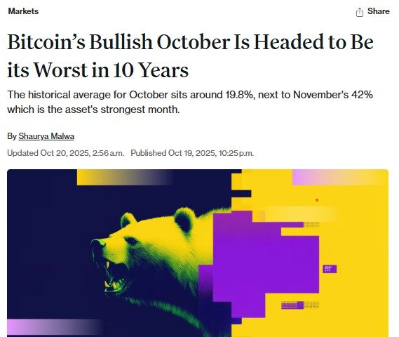 (서울=뉴스1) 박형기 기자 = 전통적으로 비트코인 등 암호화폐(가상화폐)가 강세를 보여 업토버(Uptober: October에서 Oc를 빼고 Up을 넣은 신조어)라고 불렸던 10월이 10년래 최악의 달을 향해 가고 있다고 암호화폐 전문매체 코인데스크가 19일(현지 시각) 보도했다.