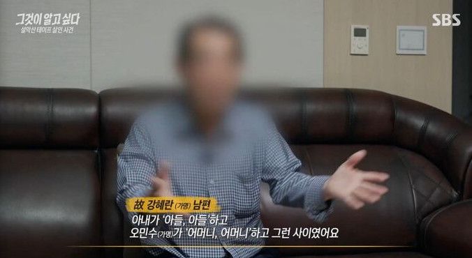끔찍한 모습으로 사망한 것은 60대 여성 강혜란 씨. 방송에 따르면 경부압박질식사로 사망한 그의 시신에서는 약물이나 독물의 성분이 검출되지 않았다.