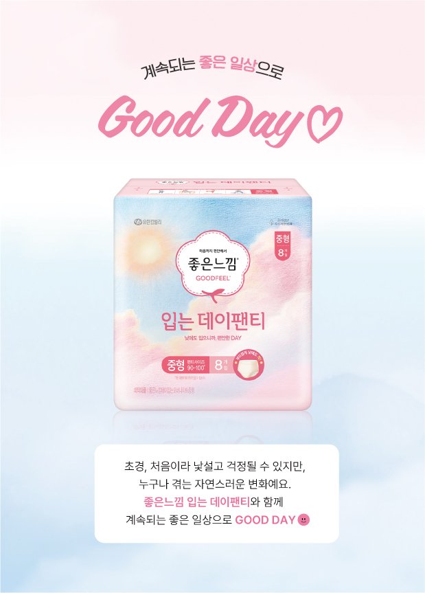 유한킴벌리는 활동량이 많고 학교, 학원 등 외부에 머무는 낮 시간에 사용하기 적합한 입는데이팬티를 나눔 제품으로 선정했다. 이 제품은 밤낮을 구분하지 않고 팬티형 생리대를 착용하는 소비자 트렌드에 착안해 좋은느낌이 처음 선보인 신개념 제품이다. 33cm 길이의 긴 흡수층이 있어 낮 시간대에도 샘 걱정 없이 안심하고 자유롭게 활동할 수 있다.