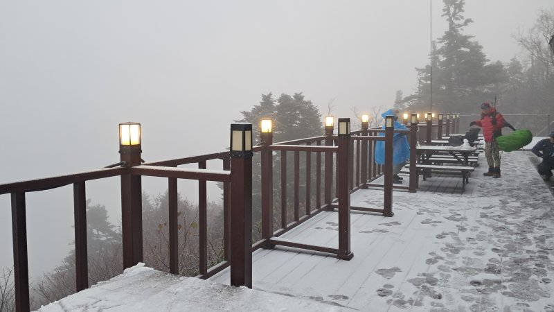 눈은 이날 새벽부터 내린 것으로 추정되며 아침 중청대피소 기준 최저기온은 영하 1도, 약 1cm정도 쌓였다.