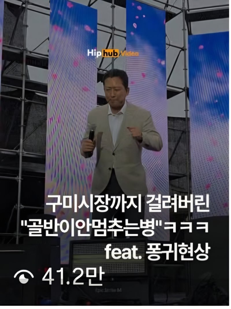 김 시장은 지난 18일 동락공원에서 열린 구미청춘힙합페스티벌 무대 인사에서 일명 '풍귀챌린지'로 불리는 춤을 따라 했다. 이 모습을 촬영한 영상이 SNS에서 공유되면서 이틀 만에 41만 2000건의 조회수를 기록했다.