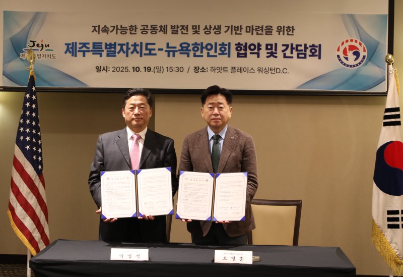 오영훈 지사는 "뉴욕한인회와 업무협약은 한인사회 발전과 고국 연결을 강화하는 계기"라며 "제주의 미래와 미주 한인사회의 번영이 서로에게 힘이 되고, 한미 양국 관계 발전에도 기여하도록 하겠다"고 말했다.