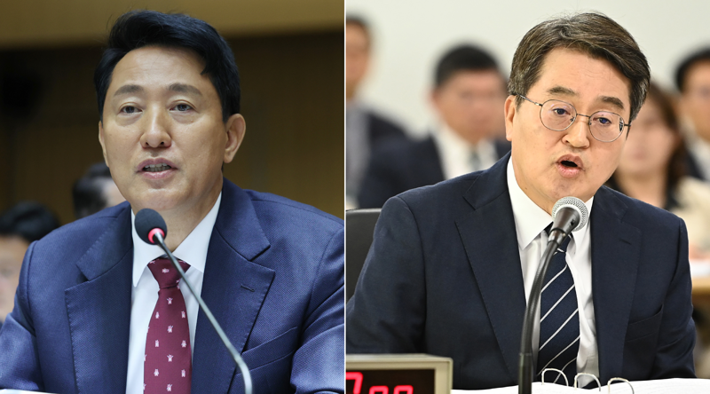 국토위는 20일 오전과 오후 각각 서울시청과 경기도청에서 국감을 열고 오 시장과 김 지사를 출석시켰다. 서울·경기는 지방선거 승패의 기준이 될 만한 격전지인 만큼, 여야는 각기 상대당 소속 현직 광역단체장의 주요 정책들에 견제구를 던졌다.