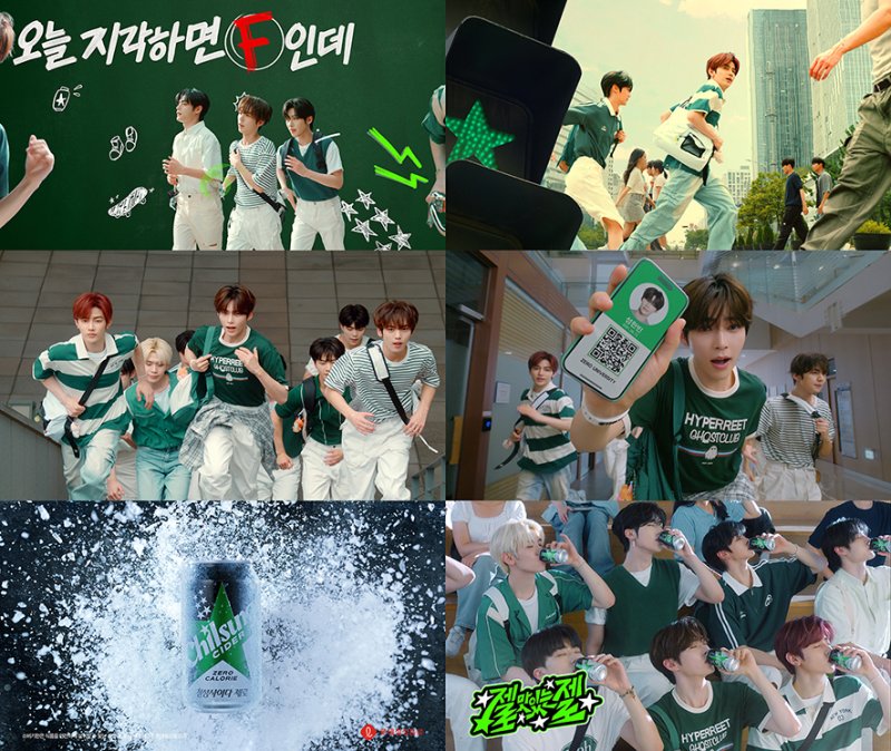 광고는 '긴박한 순간 더 짜릿하고 맛있게 즐기는 칠성사이다 제로'라는 콘셉트로 제작됐으며, 광고에서 제로베이스원은 수업에 늦은 대학생으로 등장해 지각하지 않기 위해 전력 질주하는 20대들의 공감 상황을 열연했다.