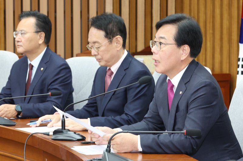 송언석 국민의힘 원내대표는 국회에서 국정감사대책회의를 열고 "이재명 정부의 부동산 정책이 시장에 대한 무능을 넘어서고 있다"며 "집을 살 수도 없고 팔 수도 없는 절망적 상황에 놓인 국민들에게 이재명 정권과 여권 고위 인사들은 막말로 상처를 주고 있다"고 밝혔다.