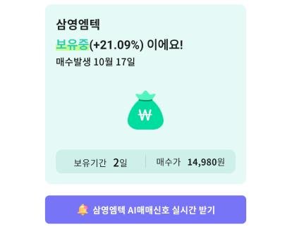 현재는 더욱 학습되어 고도화된 AI매매신호를 발생하고 있어, 이용자들의 호응이 아주 크다.