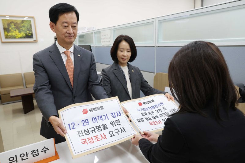 국민의힘은 21일 국정자원 화재·여객기 참사 관련 국정조사 요구안을 국회 의안과에 제출했다.
