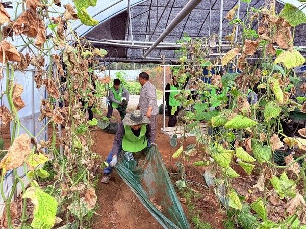 이번 활동은 가을 수확기를 맞아 일손 부족으로 어려움을 겪는 농가를 지원하기 위해 마련됐다. 일손돕기에 참여한 IT부문 박도성 부행장을 비롯한 20여명의 임직원들은 오이 수확, 농경지 주변환경정비 등의 활동을 진행했다.
