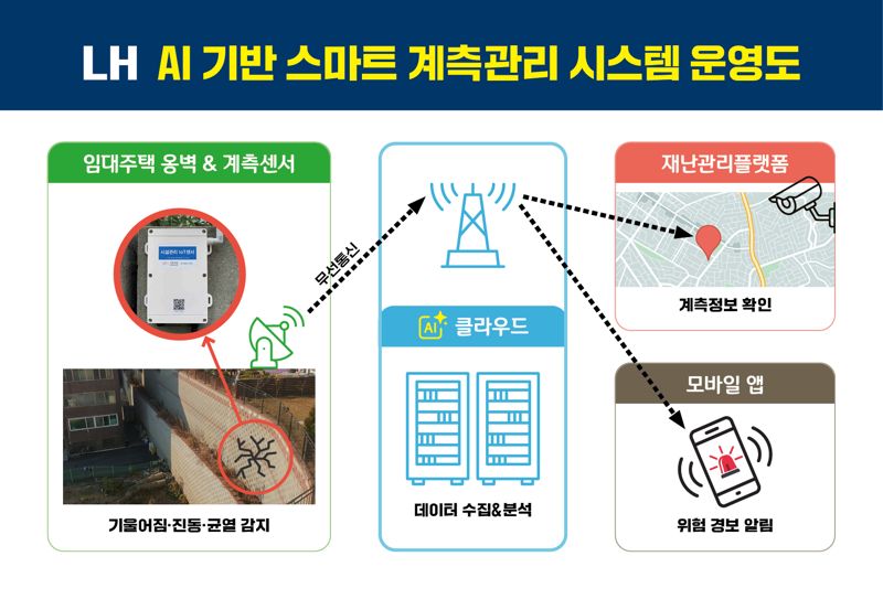 최근 갑작스러운 기후변화로 집중호우·지반침하 등 주택 인근 급경사지에 대한 자연재해 위험이 커지고 있다. 이에 LH는 옹벽 관리체계 고도화를 위한 AI 기반 스마트 계측관리 시스템을 도입키로 했다.