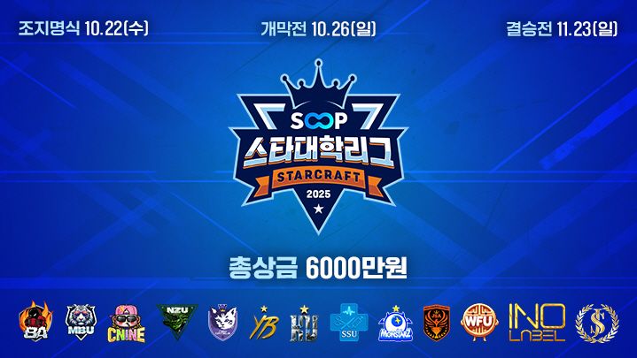 이번 대회는 이날 프릭업 스튜디오에서 열리는 조 지명식을 시작으로 다음 달 23일 상암 SOOP 콜로세움 오프라인 결승전까지 약 한 달간 이어진다. 총 상금 6000만원 규모로 진행되며 13개 스타대학 크루와 300여명의 스트리머가 참여한다.