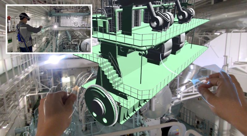 이 날 공개된 영상에서는 '갤럭시 XR'을 장착한 작업자가 3D로 구현된 LNG 운반선의 엔진을 패스스루(Passthrough), 핸드 트래킹(Hand Tracking) 기술을 활용해 가상공간에서 검사하는 모습이 시연됐다.