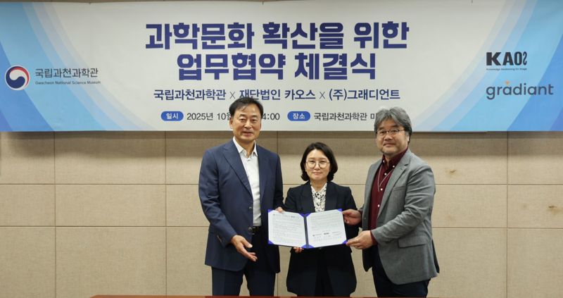 이번 협약을 통해 세 기관은 카오스재단의 과학 대중 강연 기획 전문성부터 그래디언트의 AI 기반 콘텐츠 제작 기술력 및 과학 플랫폼 ‘SOAK(Scientific Odyssey Along the Knowledge, 쏙)’ 운영 경험, 그리고 국립과천과학관의 과학문화 인프라까지 결합해 시너지를 극대화한다는 방침이다. 또 과학문화 확산을 위해 향후 오프라인과 온라인을 아우르는 활동도 추진한다.