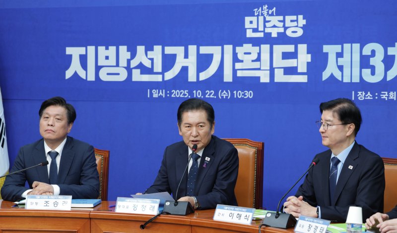 정청래 민주당 대표는 이날 오전 국회 당대표회의실에서 열린 지방선거기획단 제3차회의에서 "(내년)지방선거에서 압도적으로 승리해 내란 청산을 확실하게 해야 한다. 착실하게 준비해 달라"며 이같이 주문했다.