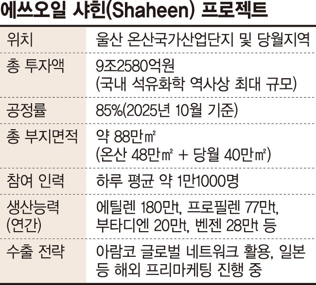 에쓰오일이 추진 중인 초대형 석유화학 프로젝트 '샤힌(Shaheen)'이 공정률 85%를 넘어서며 내년 상반기 가동을 앞두고 있다. 국내 석유화학 투자 사상 최대 규모인 이번 사업은 정유 중심 구조에서 고부가 석유화학으로 전환을 도모하는 핵심 전략으로 내년 6월 기계적 완공 이후 시운전을 거쳐 본격 생산에 들어갈 예정이다.