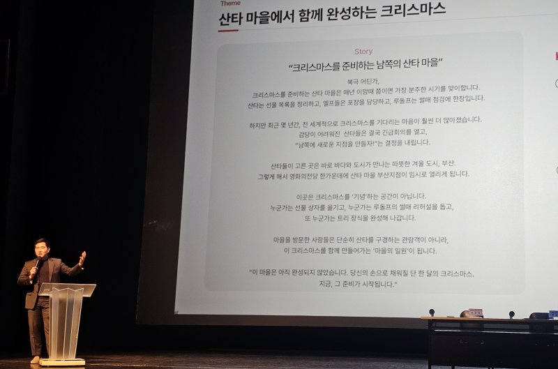 푸드트래블 박상화 대표는 22일 오후 영화의전당 하늘연극장에서 '2025 크리스마스 빌리지 부산' 기자회견을 열고 올해 행사 전반을 소개했다.