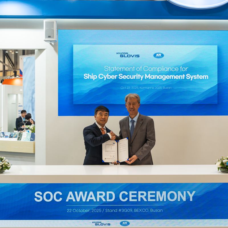 KR은 또 국내 최초로 개발한 ‘사이버보안 관리시스템(CSMS)’ 인증 체계를 통해 현대글로비스의 사이버보안 체계를 검증하고 이날 인증서를 공식 수여했다.