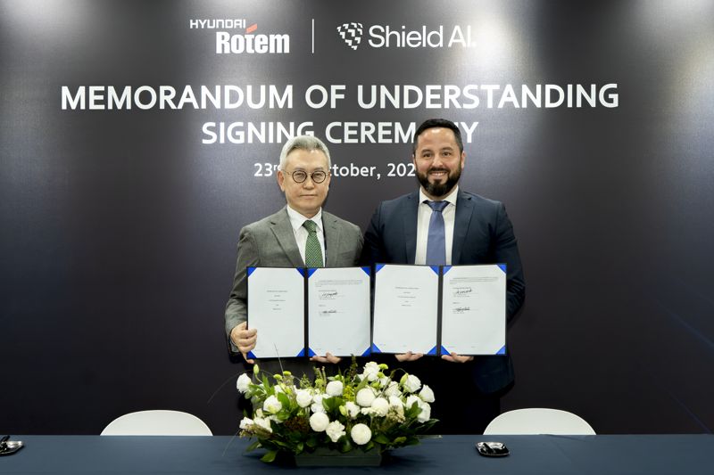 현대로템은 지난 23일 경기 고양시 킨텍스(KINTEX)에서 열린 ‘2025 서울 국제 항공우주 및 방위산업 전시회(ADEX)’에서 미국의 AI 솔루션 업체인 ‘쉴드(Shield)AI’와 국방 AI 기반 다목적 드론 운용 기술 개발을 위한 업무협약(MOU)을 체결했다.
