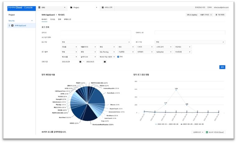 NHN클라우드는 사이버 공격 발생 수가 급증하는 가운데서도 다수 고객사가 NHN앱가드로 보안 취약성을 개선하고 공격을 차단해 나가고 있다고 밝혔다. 현재 NHN앱가드를 자사 앱에 도입한 고객사 80%가 서비스를 해지하지 않고 이용을 이어 나가고 있다고 전했다.