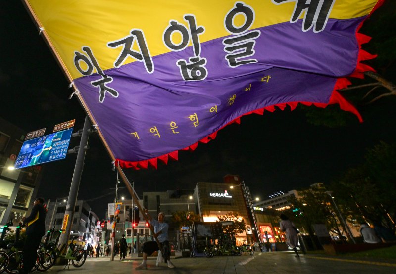 10·29 이태원 참사 유가족협의회 광주전남지부는 24일 오후 광주 동구 국립아시아문화전당 회화나무숲 일원에서 10·29 이태원 참사 3주기 광주시민추모대회를 열었다.