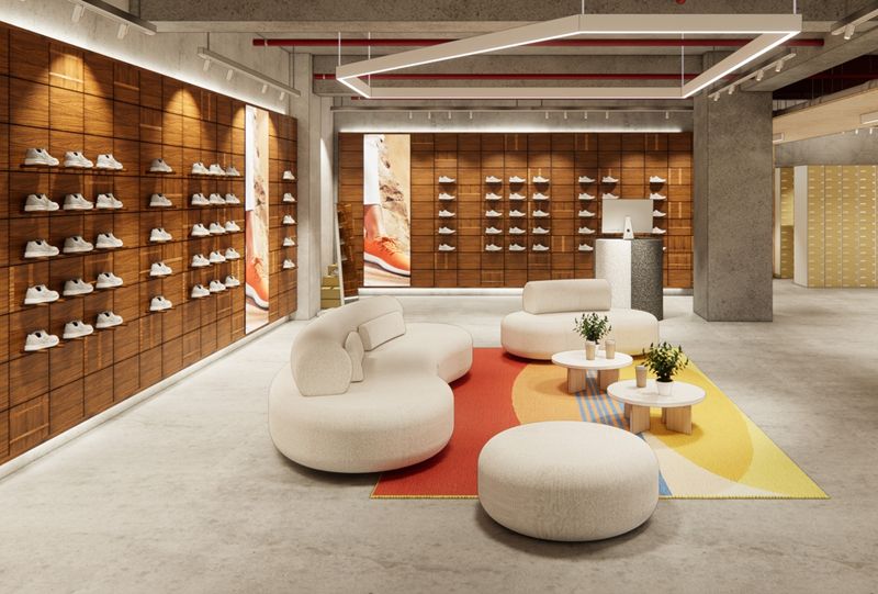 단순한 신발 판매 공간을 넘어 지속 가능한 브랜드 철학을 '쉼'과 '커뮤니티'로 확장한 복합형 매장이다.