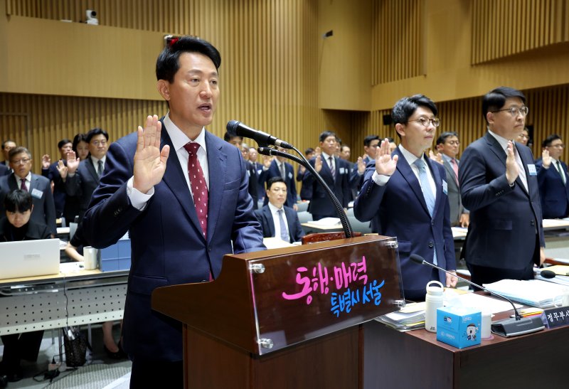 앞서 오 시장은 지난 20일 국토위의 서울시 국정감사에서 민주당 위원들이 무담보 대여금 문제를 거론하며 지방공기업법 위반이자 배임 소지가 있다고 주장하자 "담보는 없지만 법적으로 상환받을 방법이 다 강구돼 있다"고 답변했다.