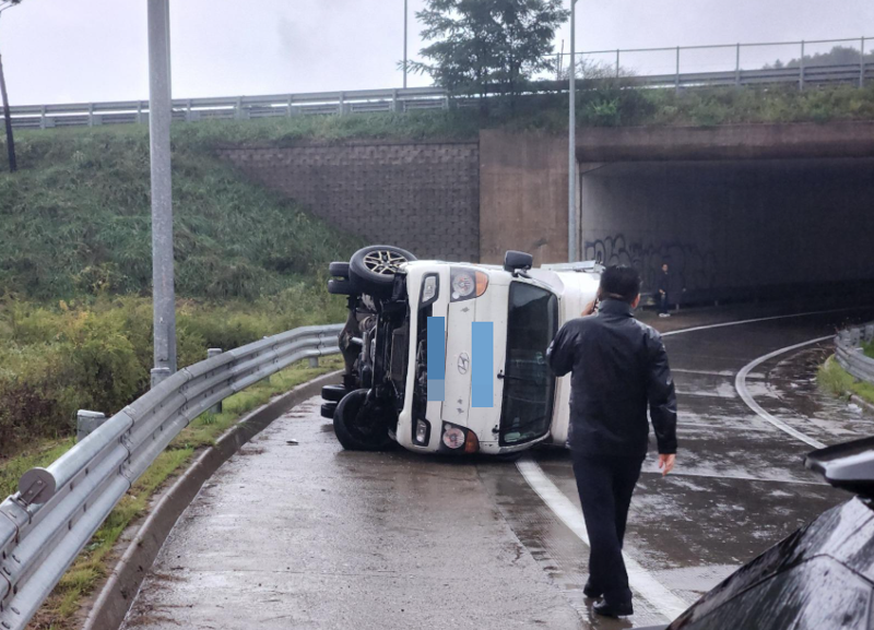 B씨는 "속초에서 보리밥집을 하시는 어머니는 60이 넘은 나이에 뒤늦게 대학에 입학하시고, 탑차를 몰고 속초와 강릉을 오가며 열심히 수업을 듣고 계신다. 수업을 듣고 돌아오시던 지난 13일 월요일, 폭우속에서 양양고속도로를 달리다가 북양양IC 인근 커브길에서 차가 운전석 쪽으로 전도됐다"고 당시 상황에 대해 설명했다.