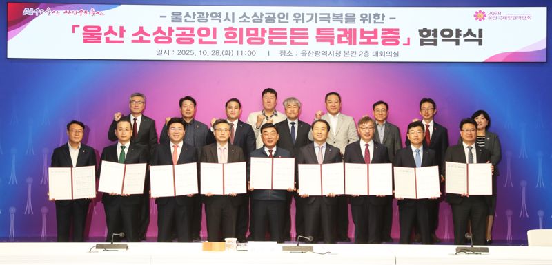 【파이낸셜뉴스 울산=최수상 기자】 울산 소상공인들의 위기 극복을 위한 금융 지원 협약식이 28일 울산시청에서 열렸다.
