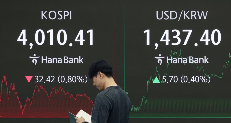 28일 한국거래소에 따르면 코스피 지수는 전 거래일 대비 0.8% 하락한 4010.41에 거래를 마쳤다. 전날 4042.83에 오르며 사상 첫 4000을 돌파한 코스피는 이날 장중 3970선까지 하락한 뒤 오후 들어 등락을 거듭하며 4010선에 거래를 마쳤다. 지수 등락폭이 커지면서 코스피 변동성도 가파르게 치솟았다.