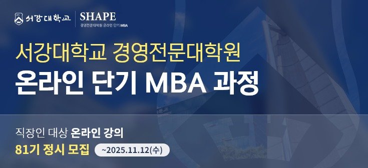 서강대 경영전문대학원 관계자는 "SHAPE 과정은 온라인을 통해 단기간에 MBA 과목들을 학습할 수 있는 효율적인 비학위 과정"이라며 "서강대의 뛰어난 교수진과 커리큘럼을 제공해 현업과 학습의 병행을 희망하는 직장인들에게 좋은 선택지가 될 수 있다"고 말했다.