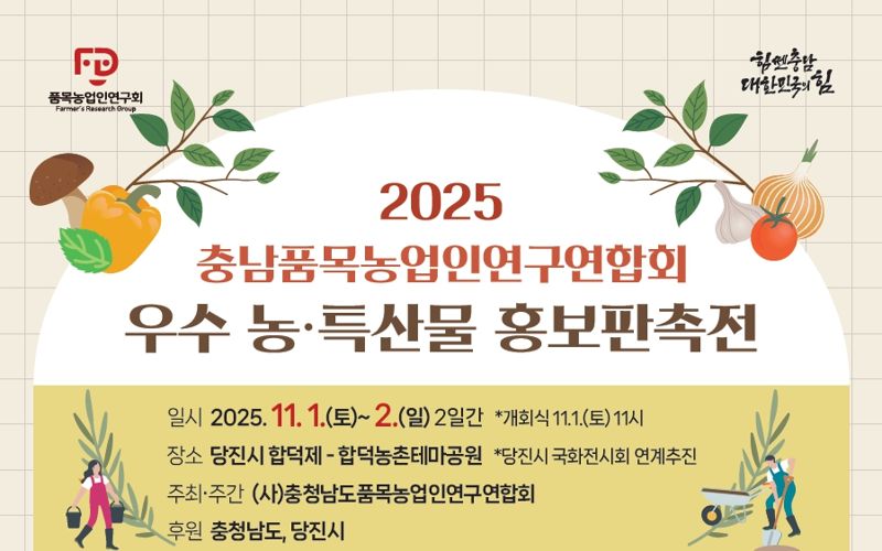 한편, 충남품목농업인연구연합회는 회원 규모가 1만 5000여 명에 달하는 품목별 농업인 연구모임 연합체로, 품목별 기술 공유와 협업 경영을 실천하며 산지 조직화를 통해 시장 교섭력을 높이고, 농산물 수급 및 가격 안정에 기여하고 있다.
