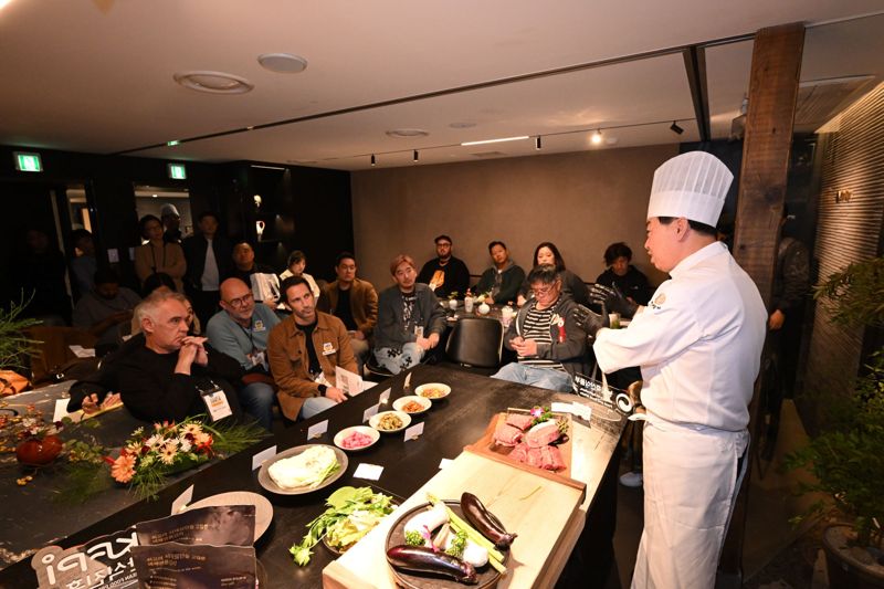 이어‘벽제갈비’에서 진행된 워크숍에서는 33년 경력의 2024~2025년 한우명예홍보대사 윤원석 셰프가 한우의 부위별 조리와 채소발효의 조화를 선보이며 채소와 육류가 어우러지는 한국 고기 문화의 깊이와 다양성을 보여줬다.