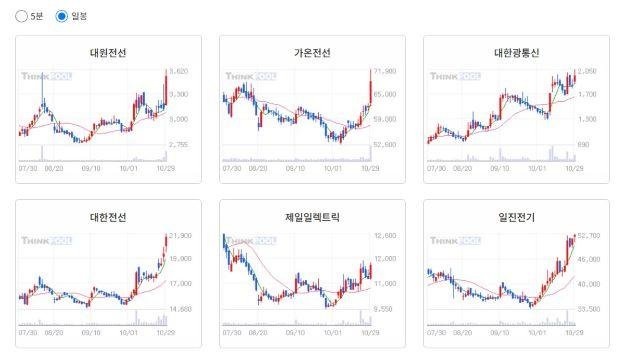 ※ [전선] 이슈 관련 종목 : 대원전선, 가온전선, 대한광통신, 대한전선, 제일일렉트릭