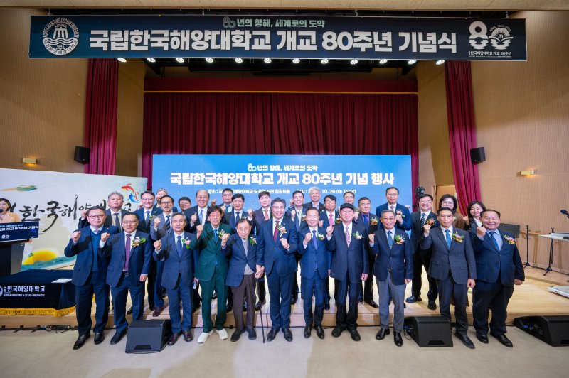 국립한국해양대는 지난 28일 신축 도서관 김강희홀에서 '개교 80주년 기념식'을 했다고 29일 밝혔다. 이날 행사는 대한민국 해양산업의 성장을 이끌어 온 대학의 80주년을 기념하고, '해양 가족' 모두가 소통하며 화합하는 축제의 장으로 마련됐다.