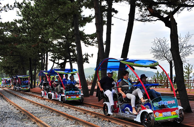 삼척해양레일바이크는 일제강점기에 건설이 중단된 옛 철길을 재활용해 근덕면 궁촌리에서 용화리까지 5.4㎞ 복선 구간을 운행한다.