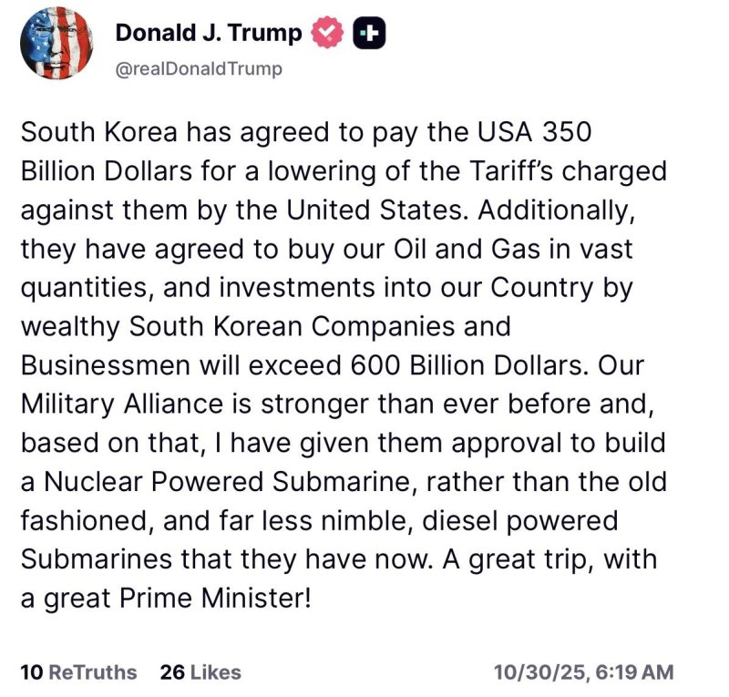 이날 새벽 트럼프 대통령은 전날 열린 한미 정상회담 결과를 설명하고 게시글 마지막 부분에 "훌륭한 국무총리(a great Prime Minister)와 함께한 훌륭한 방문!"이라고 썼다. 현재 이 게시글 내 해당 문구는 국무총리 대신 대통령으로 수정된 상태다.