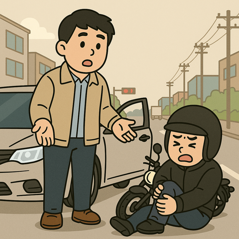 A씨는 1차로에서 자동차를 운전하다가 방향지시등을 점등하지 않은 채 2차로로 진로를 변경했다. 2차로에 있던 이륜자동차 운전자 B씨는 A씨의 차량을 피하려 급제동하다가 넘어지는 사고가 발생했다. 양 차량 간의 안전거리가 확보되지 않은 상황이었지만, 차량 간 접촉은 발생하지 않았다.