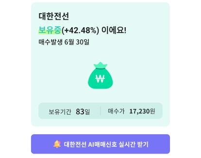 또한 개별 종목에서 나의 보유 매수가를 입력하면, 나만의 매도신호도 개별적으로 받을 수 있다.