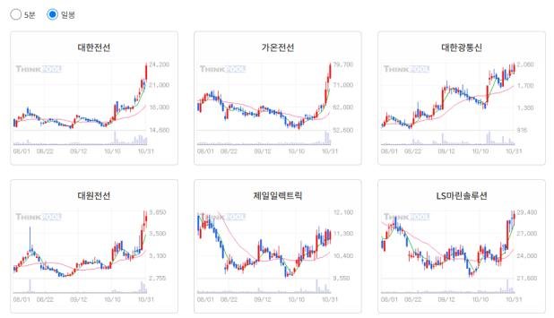 ※ [전선] 이슈 관련 종목 : 대한전선, 가온전선, 대한광통신, 대원전선, 제일일렉트릭