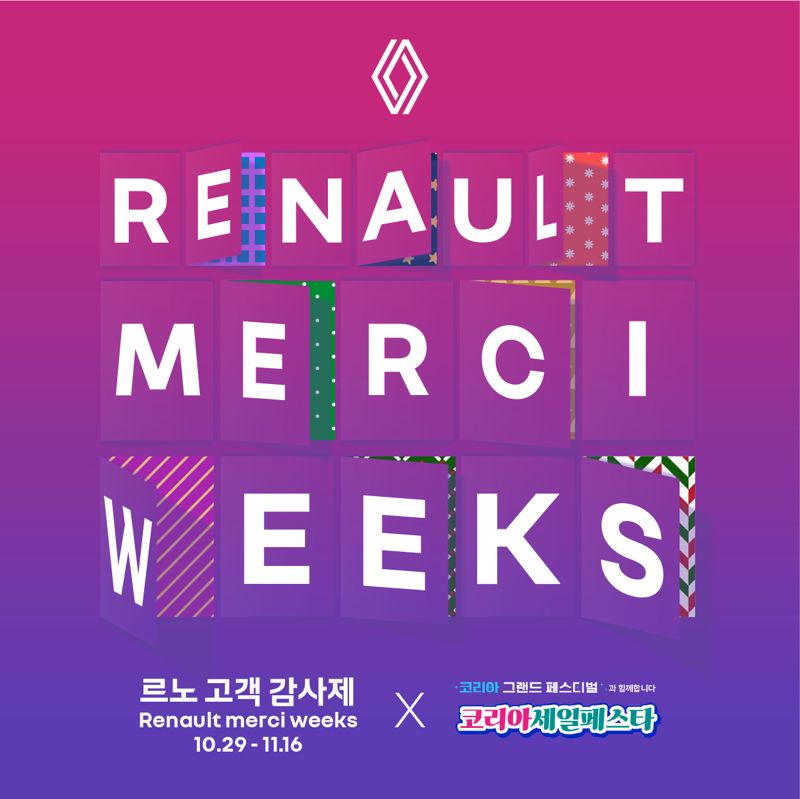 [파이낸셜뉴스] 르노코리아가 올 연말까지 고객 감사제 ‘르노 메르시 위크(Renault Merci Week)’를 진행하고 매주 고객들에게 풍성한 선물을 증정한다고 31일 밝혔다.