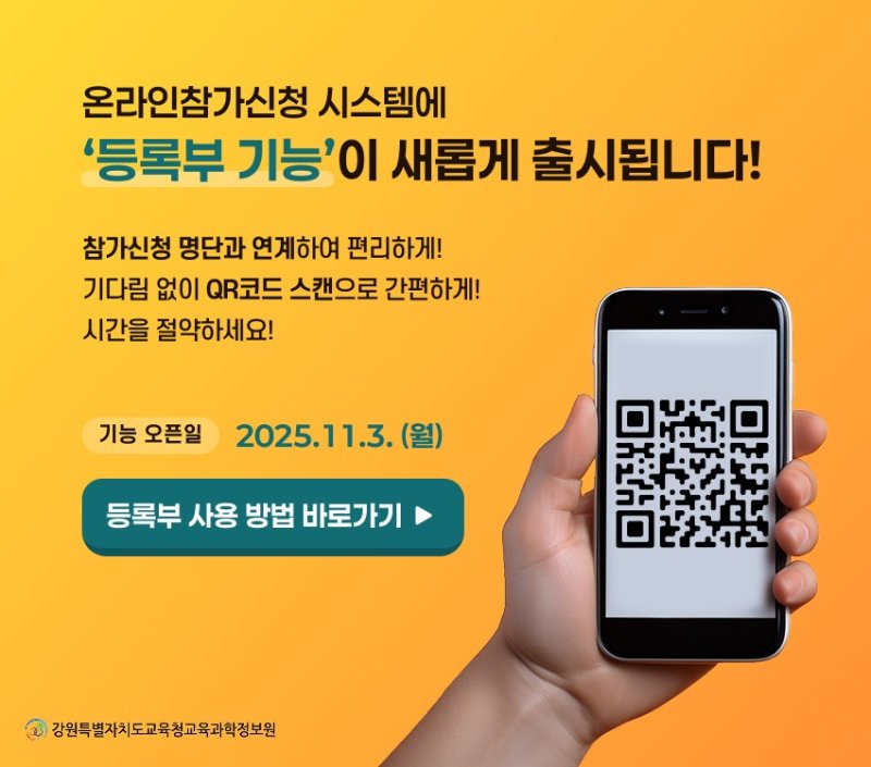 ‘온라인 등록부’는 교육포털에서 사전 신청한 참가자뿐만 아니라 현장 참여자도 스마트폰으로 큐알(QR)코드를 스캔해 간편하게 출석 등록을 할 수 있도록 설계됐다.