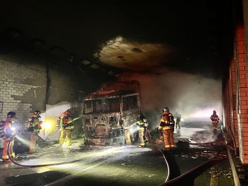 불은 트럭 운전석을 모두 태웠고 이 과정에서 뿜어진 검은 연기가 지하차도를 가득 메웠다.