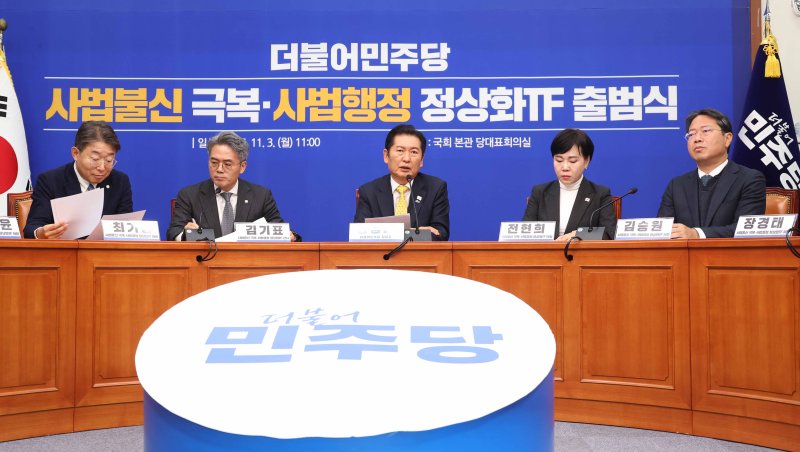 정청래 대표는 이날 국회에서 사법불신 극복·사법행정 정상화 태스크포스(TF) 출범식에 참석해 "대법원장에게 집중된 인사와 예산에 대한 권한을 분산하고 외부 참여자를 포함한 법원 운영에 대한 의사결정 구조를 투명하게 만드는 것이 진정한 사법 독립의 출발점"이라며 이탄희 전 민주당 의원이 제기한 사법행정위원회 설치를 심도있게 검토하겠다고 밝혔다.
