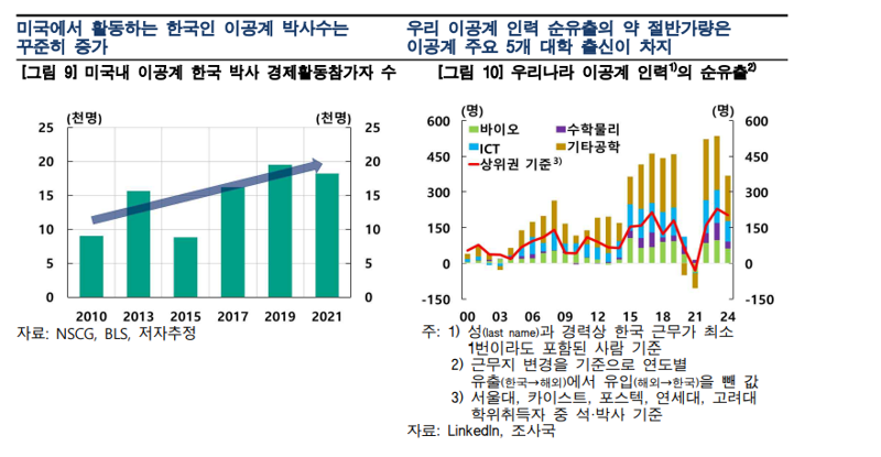 최준 한은 거시분석팀 과장은 "이공계 인재의 해외 유출을 막기 위해 무엇보다 성과에 기반하고 유연한 임금·보상체계로 바꿔야 한다"며 "정부도 인적자본 투자에 세제 인센티브와 제도적 지원을 강화해야 할 것"이라고 강조했다.