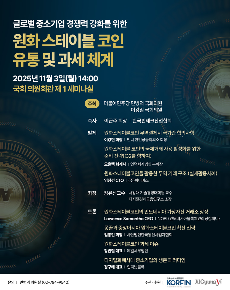 오 부회장은 “사용자의 편의성을 제고하고, 사용 유인·지원책 및 경제적 불이익 발생 방지 제도를 정비·구비할 필요가 있다”며 “현재 원화 스테이블코인 도입은 국내 거래에 중점을 두고 있지만, 궁극적 성공은 국제거래에서 시장지배력 확보를 의미한다. 관련 시급한 연구와 제도가 정비돼야 한다”고 말했다.